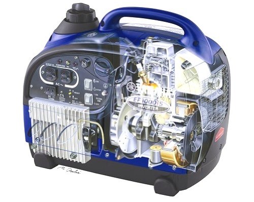 The Yamaha EF1000iS inverter generator offers the ultimate in lightweight portable electricity. The EF1000iS and its inverter system features Pulse Width Modulation (PWM), delivering clean power so you can use it confidently for powering computers, solid-state appliances with built-in computer functions or microcomputer-controlled power tools. Other features include a lightweight, easy-to-carry design, Noise Block Acoustically designed sound reduction system and an extended run time. The EF1000iS is definitely a powerhouse performer at your fingertips. Engine: Yamaha OHV, HP: 2.2, Rated Watts: 900, Rated Watts LP: N/A, Rated Watts NG: N/A, Surge Watts: 1,000, Surge Watts LP: N/A, Surge Watts NG: N/A, Run Time: 12 Hours at 1/4 Load, Receptacles (qty.): 1, Noise Level (dB): 57, Fuel Type: Gasoline, Fuel Capacity (gal.): .66, Start Type: Recoil, Dimensions L x W x H (in.): 17 23/32 x 9 13/32 x 14 29/32